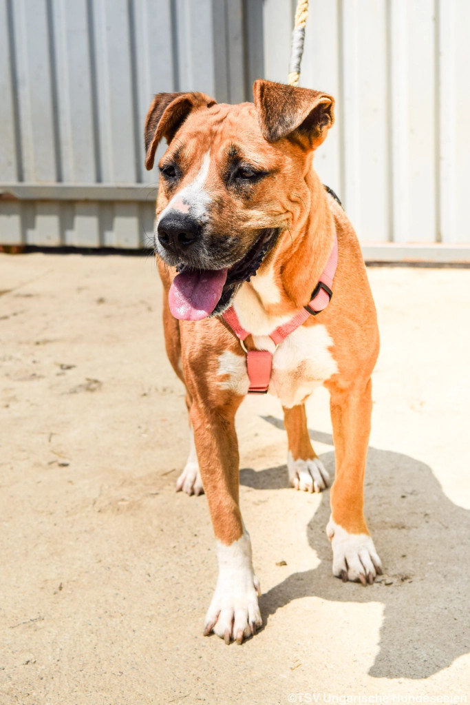 Emily-t egy másik állatvédőtől került hozzánk. Gyakran segített nekünk nehéz időszakjainkban, így természetes volt, hogy átvesszük Emily-t további három kutyával együtt. Ő egy emberbarát, kedves fiatal kutya. A testvérével és egy másik kutyával élnek egy kennelben. Sokat játszanak, de egymással harmonikusan viselkednek. Emily korának megfelelően temperamentumos és szeret sokat mozogni. Egyértelműen a menhelyen nincs akkora mozgástere, hogy teljesen le tudja magát fárasztani. Nem jár rendszeresen sétálni, ezért még tanulnia kell a pórázon való sétát.